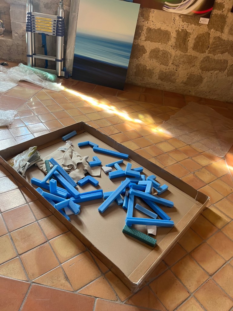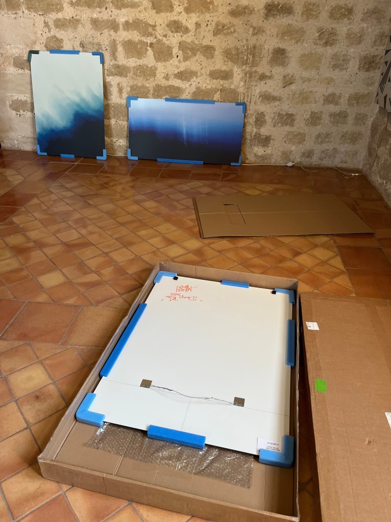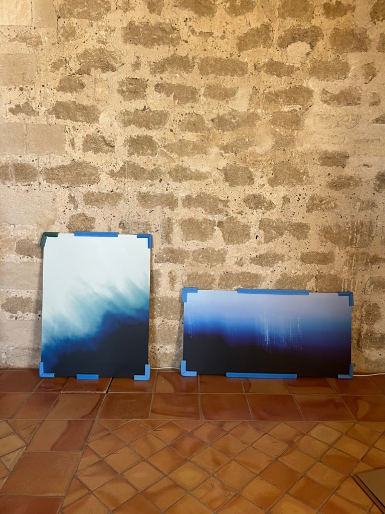Après un mois d’exposition (Mars 2026) dans la salle du Château Fargues du Pontet (84), les séries « Bleu Oraison » et « Écouter Voir » vont prendre un autre chemin.